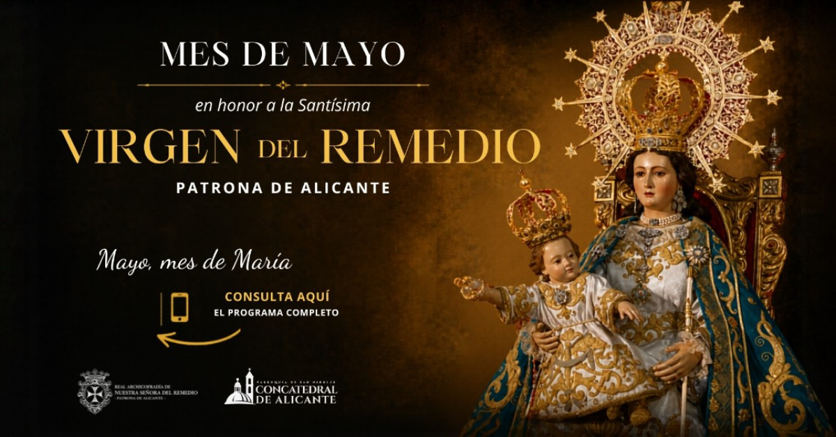 Consulta el programa completo del mes de mayo 2026 en honor a la Virgen del Remedio, patrona de Alicante, en la Concatedral de San Nicolás. Horarios, actos y celebraciones